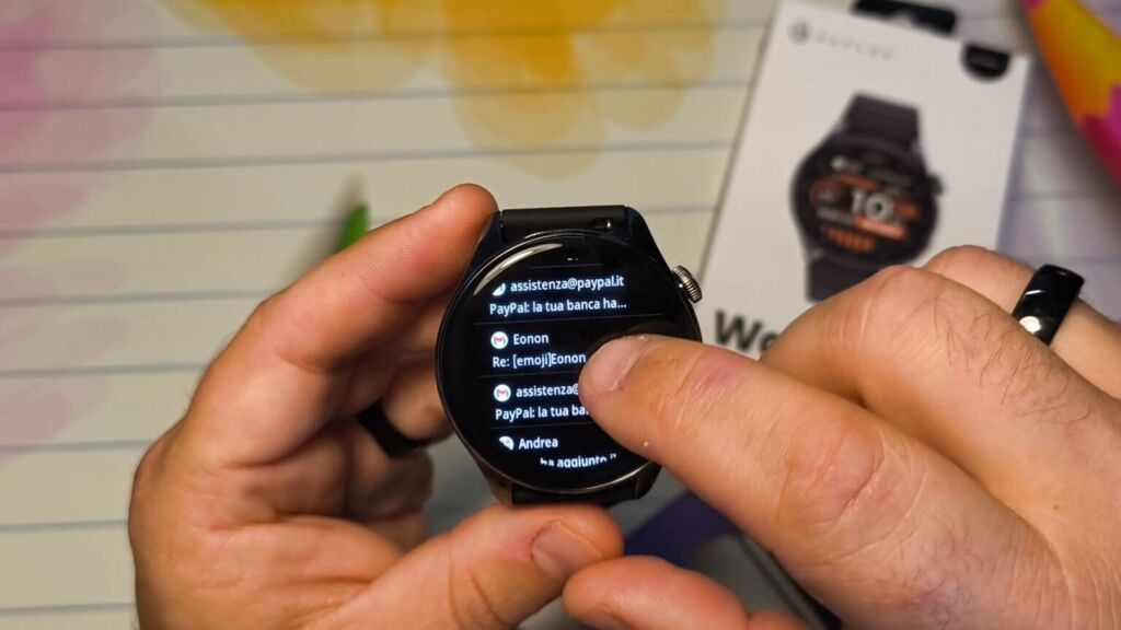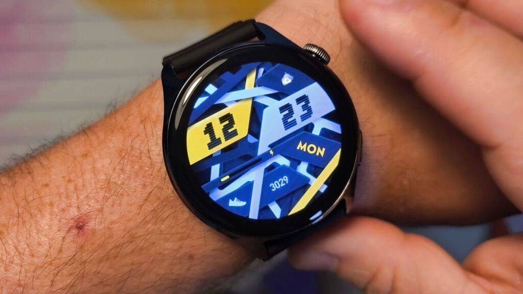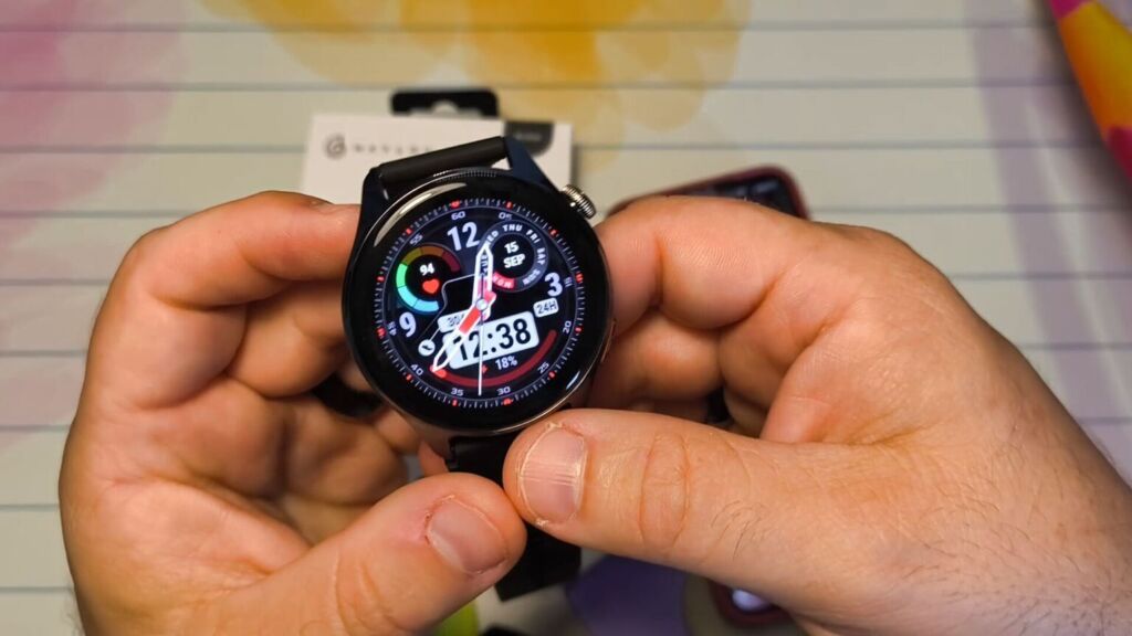 تتميز الساعة الذكية بشاشة AMOLED بقياس 1,43 بوصة مع زجاج منحني 2.5D، مما يمنحها مظهرًا عصريًا. كما تتميز بدقة 466 × 466 بكسل، مما يوفر دقة عرض جيدة في فئتها. وتضمن هذه الشاشة سطوعًا يصل إلى 1.000 شمعة. وقد تأكدنا من خلال اختباراتنا من إمكانية استخدام الساعة بسهولة في الأماكن جيدة الإضاءة.