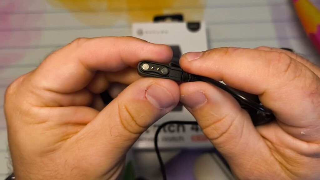 يتم الشحن عبر موصلات مغناطيسية في قاعدة الساعة الذكية. في هذه التجربة، استخدمنا الكابل المرفق مع محول طاقة بقوة 15 واط. بهذه الطريقة، استغرقت ساعة Watch 4S حوالي ساعتين و2 دقيقة لشحنها بالكامل. نعلم أنه كان من الممكن أن يكون وقت الانتظار أقصر، لأن العلامة التجارية نفسها أصدرت ساعات بنفس عمر البطارية، مع شحن أسرع، مثل Solar Ultra.